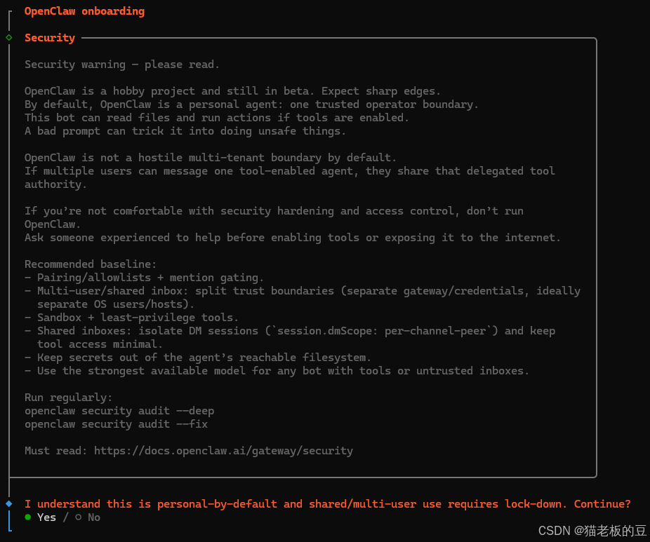 作者:猫老板的豆 文章目录 前言一、下载并安装 OpenClaw二、启动配置向导与绑定 AI 大脑 1. 启动向导2. 确认账户类型3. 选择快速入门模式4. 选择大模型 (AI 大脑)5. 选择 API 接口区域6. 填入你的专属 API Key ...