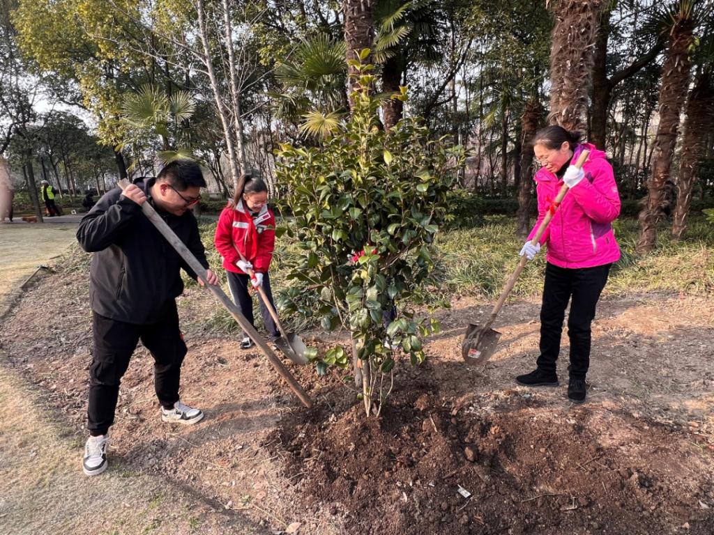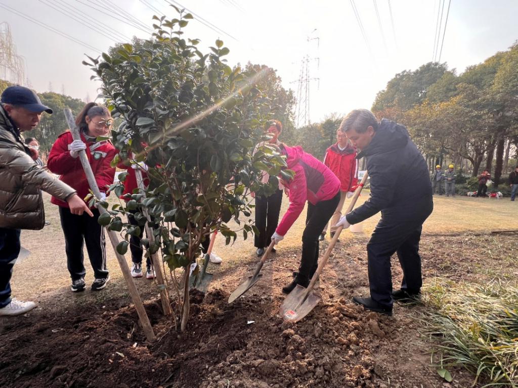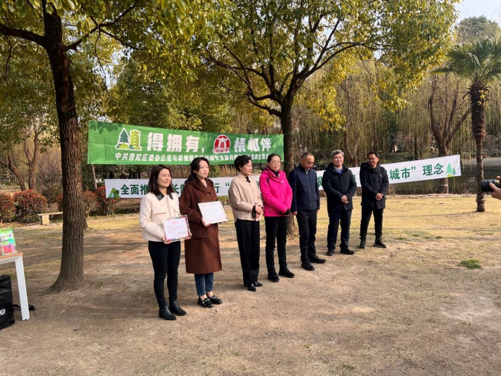 3 月 11 日清涧林带内,举办了主题为 " ‘植’得拥有,‘真’情相伴 " 的中共普陀区委办公室与真如镇街道植树节支部共建暨林长巡林活动。