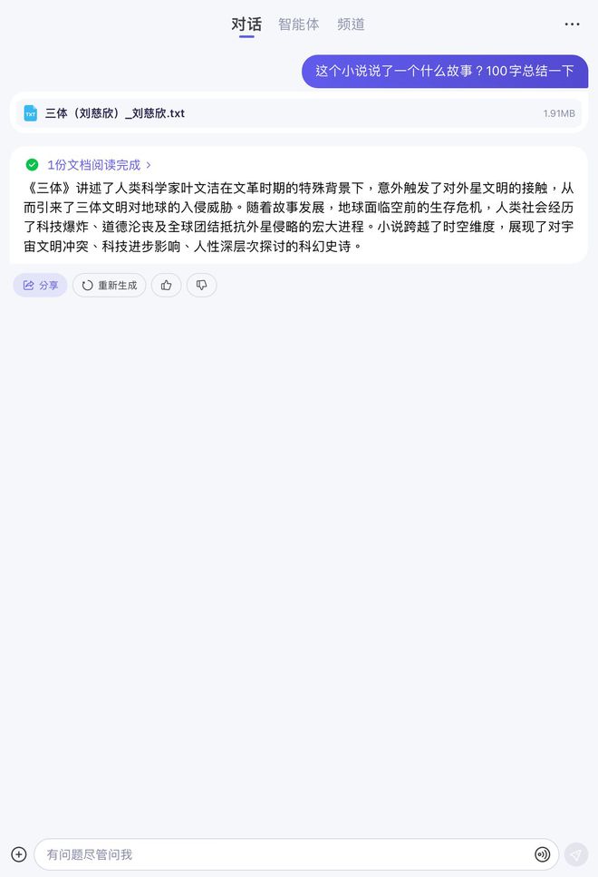 (图源:百度 文心一言) 但免费应用也是一件好事情,长文本的快速阅读一直以来也是用户在大模型各项实际应用场景最关注的一项,比如正在写毕业论文的学生党,可能将超长的论文喂给大模型工具,让其快速提炼、总结,甚至找出论文中的研究结论。 长文档能力拓展,用途比我们想象中要多阿里的通义千问将长文本档能力的拓展方向瞄准在专业领域的内容理解上,尤其是金融、医学等,对于这些行业的从业人员而言,从前需要花上几天或是十几天才能读完的文章,如今只需花上十几秒就能看完其中的精华之处。 但大模型长文本的能力远不止于此。