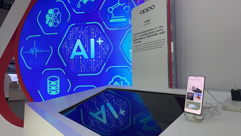 AI手机展台。新华社记者 周琳 摄 在大会展厅里,打开OPPO的“小布”助手,就能轻松体验“把大模型装进手机里”的乐趣:不仅会议记录可以“秒”整理,图片冗余部分也能“丝滑”去除,用户可以根据需求,生成证件照、艺术照等不同风格的照片。 “从行业发展阶段来看,AI手机将成为继功能机、智能手机之后,手机行业的第三阶段。”OPPO创始人兼首席执行官陈明永表示。