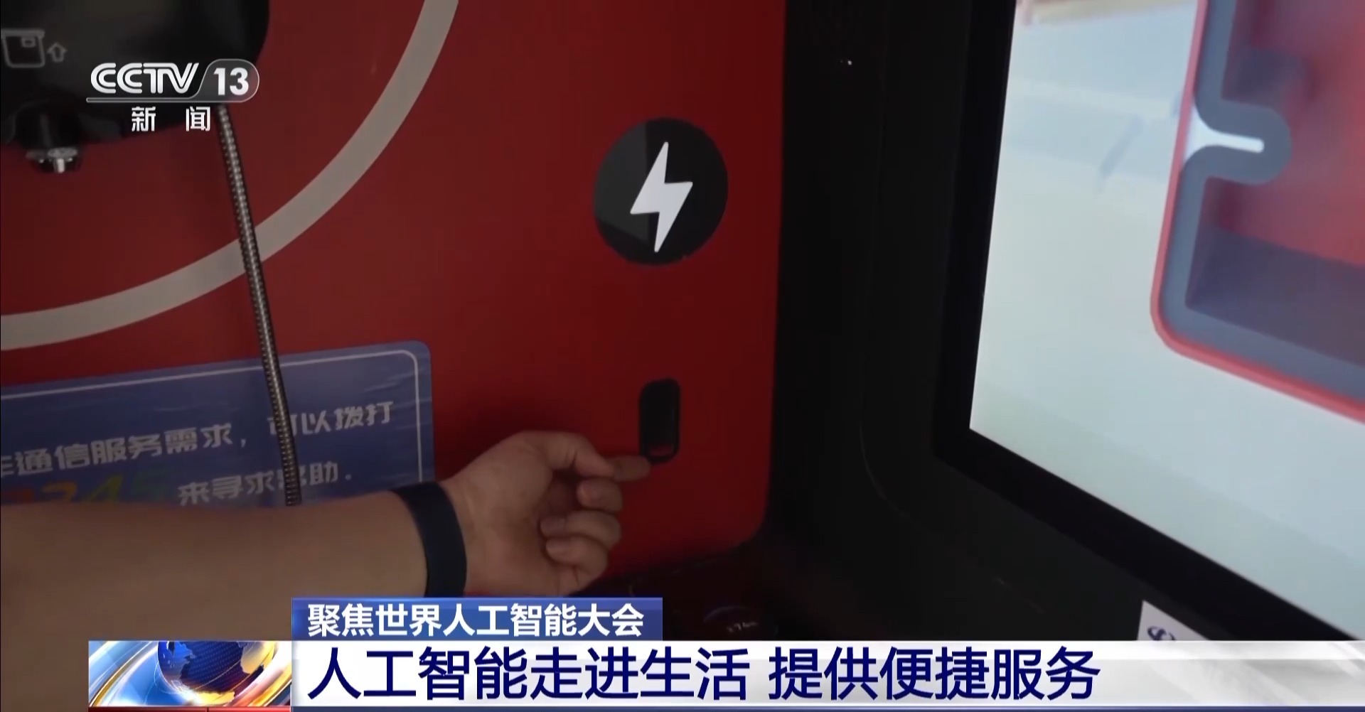上海市经信委人工智能发展处处长 潘焱:大会构建了多元创新生态,对接132个采购团组,形成126个项目采购需求,预计采购金额150亿元,推动24个重大产业项目签约,预计总投资额超400亿元。 截至6日下午2点,大会线下参观人数突破30万人次,全网流量突破19亿,比上届增长90%,均创历史新高。 人工智能走进生活 提供便捷服务 在2024人工智能大会场馆里的各种智能展品层出不穷,其实在场外的街头巷尾,一些人工智能设施已经悄然出现在我们的身边。 总台央视记者 古峻岭:在上海的外滩附近,一种红色的电话亭随处可见。它和一般电话亭不同,外部非常醒目地标注着免费充电、免费通话、一键叫车的智能服务。