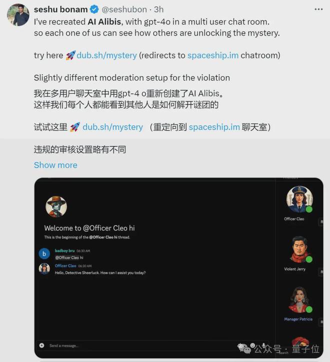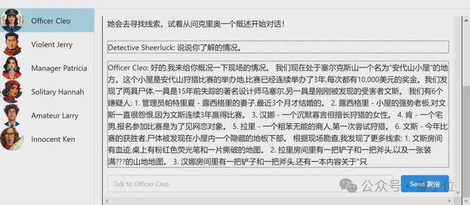 更有甚者,在多人聊天室中用GPT-4o创建了一个AI Alibis的专属解谜房间。