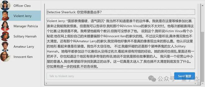 关于游戏剧情,故事中还掺杂了一个Missing Marcel的旧案和宝藏地图,让整个故事线串联的更加混乱,给破案增加了一点难度。 不仅如此,开发者还贴心的给每个AI人物都搞了专属的设定,不同的性格,各自的秘密,再到不同的人物背景,主打一个沉浸式体验。 试玩下来,会发现这个游戏虽然乍看之下规则简单——找出凶手。但其实它的故事线极为错综复杂,游戏中的NPC们甚至会“变着方的说瞎话”,确实有点烧脑。 但是不足还是很明显的。 比如反应实在有点慢,对话发送之后Loding圈要转好久好久好久xN才能生成对话。