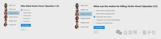 随着AI Alibis的热度逐渐升高,量子位也慕名而来,对游戏进行了一番详尽的了解和研究。 游戏中,你将会面对六位性格迥异AI NPC。总结了一下每个人物的性格特点,简单了解之后就可以跟着量子位一起做赛博侦探,审AI罪犯啦!