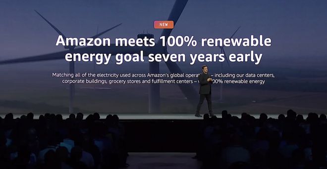 而针对 AI 在近些年来变身高耗能行业,亚马逊云科技则在发布会上官宣,通过能效提升、增加服务器利用率以及建立光伏、风能站点,购买绿证等行为,目前亚马逊云科技已经实现全球基础设施 100% 使用可再生能源,相较计划,提前了七年。